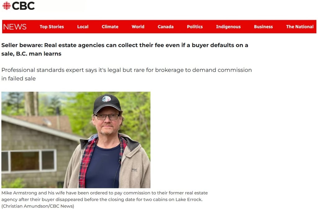 Seller beware: Real estate agencies can collect their fee even if a buyer defaults on a sale, B.C. man learns